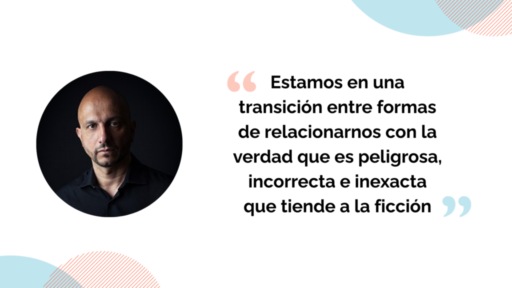 “Estamos en una transición entre formas de relacionarnos con la verdad que es peligrosa, incorrecta e inexacta que tiende a la ficción, porque en vez de decirme (el Chat GPT) «no te lo puedo decir porque no he leído esa novela», pues se inventa a partir de lo que puede leer una aproximación”.