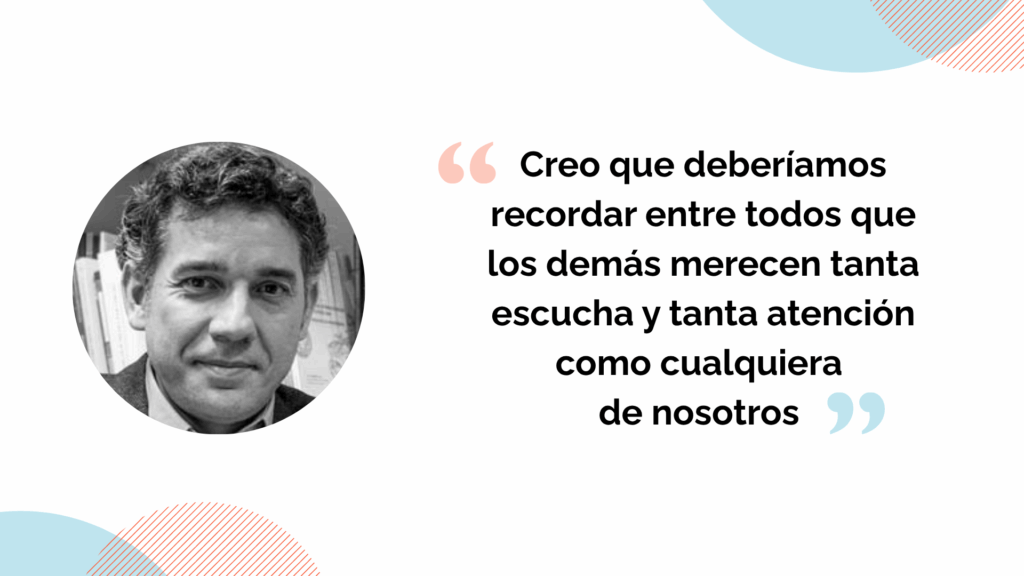 “La clave de una buena entrevista y la clave de muchas otras cosas también, pero desde luego de una buena entrevista es saber escuchar. Escuchar con atención, escuchar de manera activa, entender lo que nos están queriendo decir. Cuando las preguntas van con un cuestionario predefinido y da lo mismo lo que el entrevistado haya dicho en la respuesta anterior, porque nosotros ya tenemos el cuestionario predefinido, habitualmente esas entrevistas carecen de alma, de profundidad, de empatía. Cuando queremos comprender a la persona, entender cuáles son sus motivaciones, sus aspiraciones y sus miedos, la clave es la escucha”.